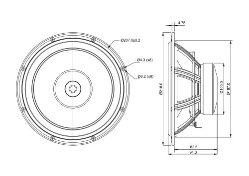 * IEC 268-5, T/S parameters measured on drive units that are broken in.