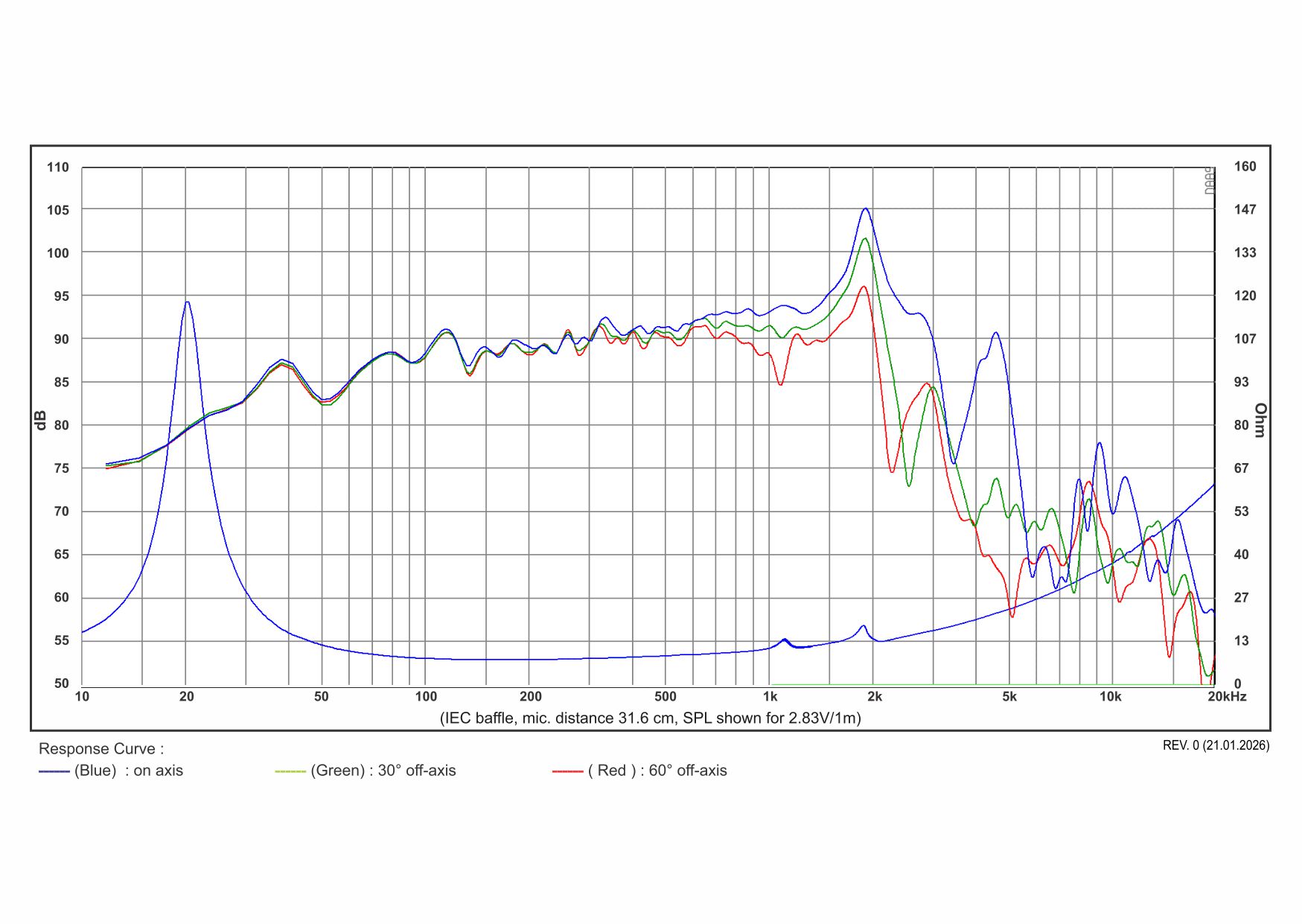 - Free air resonance, Fs 20.2 Hz
